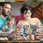 I create hand-drawn paintings that capture these first moments between a mother, a baby, and their family.